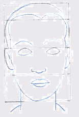 В изображении лица существуют определенные соотношения между его частями. Лицо можно разделить по горизонтали на три сегмента, соответствующих размеру глаза. Расстояние между глазами равно глазу, это же расстояние определяет ширину носа. Глаза должны находиться на той же высоте, что и уши. По вертикали лицо строится тоже из трех частей, самая верхняя - удвоенная ширина нижних секций, она определяет длину носа. Две нижние секции показывают положение губ и подбородка. При рисовании губ нужно учитывать, что верхняя губа всегда тоньше нижней. Если к этим элементам добавить дуги бровей, мы получим приемлемую схему для рисования лица.