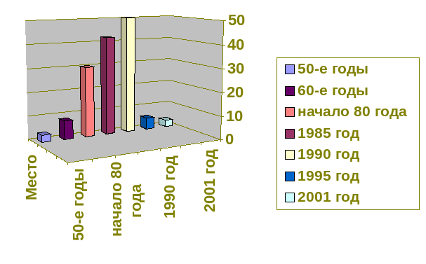 | Дата (год) | 50-е | 60-е | Нач.80 | 1985 | 1990 | 1995 | 2001 |