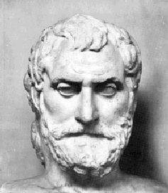 | Фалес Милетский (ок. 624 - ок. 546 до н.э.) - греческий философ и математик из Милета. Представитель ионической натурфилософии и основатель милетской школы. Считался одним из семи мудрецов Греции. В Египте занимался изучением причин наводнений, нашел способ измерения высоты пирамид. По словам Геродота, Фалес предсказал солнечное затмение, наблюдавшееся 28 мая 585 до н.э. Считал материю одушевленной. Пытаясь определить основу материального мира, пришел к выводу о том, что ею является вода. Фалес (между 640 и 545 до Р.Х.) - древнегреческий философ, основатель Милетской школы философии, одной из первых зафиксированных философских школ. |