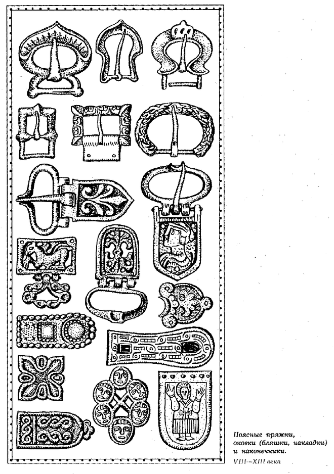Интересно, что поясные наборы «мирных» мужчин менялись от племени к племени: например, вятичи предпочитали лировидные пряжки. А вот ремни профессиональных воинов — членов дружин — были тогда почти одинаковы по всей Восточной Европе. Учёные видят в этом свидетельство широких связей между народами и определённой схожести воинских обычаев разных племён, есть даже термин — «дружинная культура».