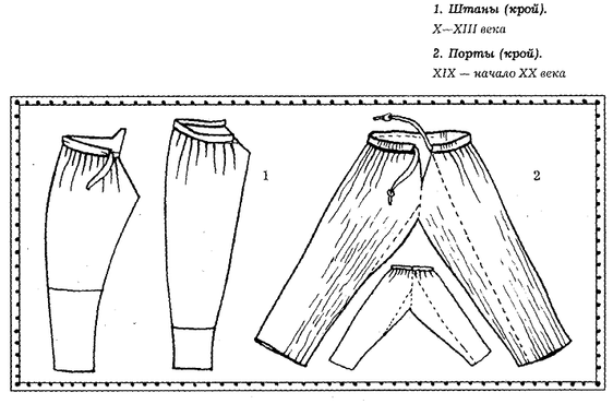 Другое название одежды для ног—«портки», а также «ноговицы».