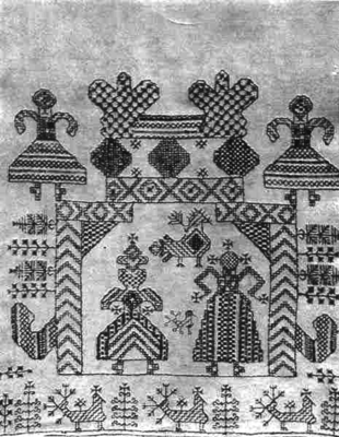 В XVIII в., когда произошли существенные изменения в экономической и культурной жизни страны, искусство (и профессиональное и народное) все более становится светским, все заметнее отрывается от своей древней мифологической основы. Однако значение некоторых узоров как символов добра, защиты от злого начала сохранялось дольше.