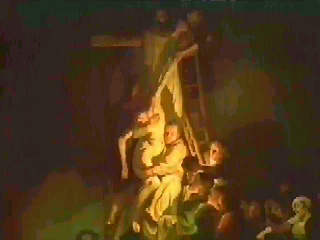 Легенда рассказана Рембрандтом с потрясающей жизненной правдой. Трагическая смерть учителя и сына повергла участников события в глубокое горе. Художник вглядывается в лица, стараясь проникнуть в души людей, прочесть реакцию каждого на происходящее. Взволнованно передает он обморок Марии, матери Христа, плач и стенания женщин, страдание и скорбь мужчин, испуг и любопытство подростков.