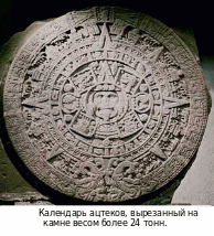 Согласно ацтекской мифологии, Вселенная делилась на тринадцать небес и девять преисподних миров. Сотворенный мир прошел четыре эпохи развития, каждая из которых завершилась гибелью человеческого рода: первая — от ягуаров, вторая — от ураганов, третья — от всемирного пожара, четвертая — от потопа. Современная ацтекам эпоха “Пятого Солнца” должна была завершиться страшными землетрясениями.