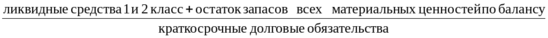 | Коэффициент покрытия (Кп) | Ликвидные средства I,II и III классов. III класс стоимость сырья и других запасов ТМЦ, готовой продукции, незавершенного производства, стоимость собственных основных фондов, разница между первоначальной и новой стоимостью арендуемого помещения, если возврат этой разницы предусмотрен арендным договором. | Все долговые обязательства кооператива или малого предприятия. |