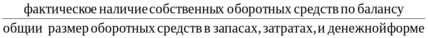 | Показатель обеспеченности собственными средства ми (Псс) | Собственные средства: уставной фонд, остатки специальных фондов, не распределенная прибыль. | Общий размер основных и оборотных средств. |