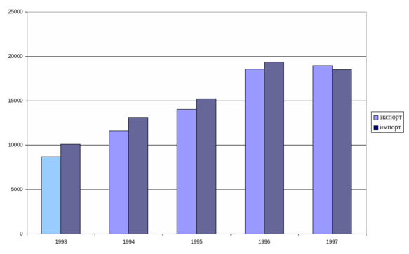 В 1997 году повысилась диверсифицированность внешнеторгового оборота. Так если в 1996 году на первую десятку партнеров приходилось 70% оборота, то в 1997 году – около 65%.