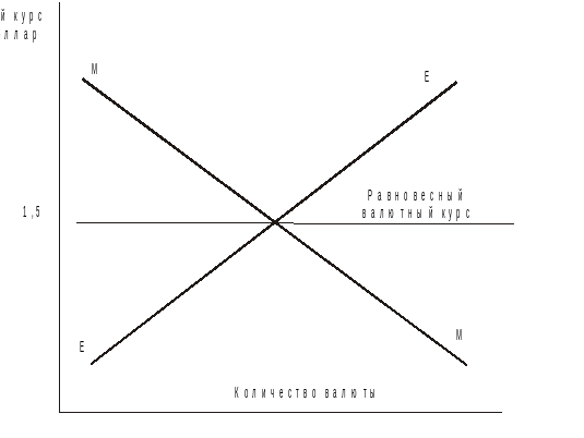 Опишем рынок иностранной валюты с помощью графика в координатах валютного курса (вертикальная ось) и количества иностранной валюты (горизонтальная ось).