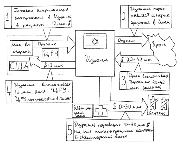 Схема составлена на базе материалов брифинга министра юстиции США Эдвина Миза. 25.11.86