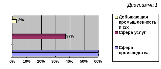Почти все крупнейшие ТНК по национальной принадлежности относятся к «триаде» – трем экономическим центрам: США, странам ЕС и Японии. В последние годы активно развивают свою деятельность на мировом рынке транснациональные корпорации новых индустриальных стран. Отраслевая структура ТНК достаточно широка. 60% международных компаний заняты в сфере производства (прежде всего они специализируются на электронике, автомобилестроении, химической и фармацевтической промышленности), 37% - в сфере услуг и 3% - в добывающей промышленности и сельском хозяйстве (см. диаграмму 1).