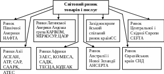 Згідно з регіональною структурою світового ринку розрізняють ринки окремих країн або їх угруповань (схема 2).