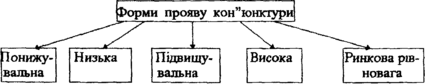 Результатом взаємодії КФФ та УФК є різні форми прояву економічної кон’юнктури (ФПК). Провідними ознаками, за якими їх відрізняють, є співвідношення попиту і пропозиції, динаміка світових цін, ділова активність на ринку (число укладених угод).