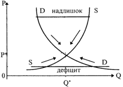 Короткочасний стан ринку, де панує рівновага попиту і пропозиції, називають ринковою рівновагою. Затяжний стан ринку переваги пропозиції товару над його попитом, насичення ринку товаром зумовлюють зниження цін, в’ялу кон’юнктуру, стан економічної кризи - збитків фірм та банкрутства.