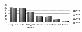 Рисунок 2 – Среднегодовой рост розничных продаж молочных продуктов, 1998–2004 гг.5