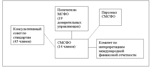 Совет по Международным стандартам финансовой отчетности – это основной орган в структуре МСФО, который несет ответственность за принятие международных стандартов. В состав Совета входят лица, подготавливающие и использующие финансовую отчетность, аудиторы и научные работники, всего 14 членов, 12 из которых работают на постоянной основе. Члены СМСФО назначаются попечителями на срок от 3 до 5 лет. Несколько членов Совета непосредственно отвечают за координацию работы с органами, устанавливающими национальные стандарты финансовой отчетности. Повседневная работа Совета осуществляется с участием разнообразного технического и административного персонала. СМСФО занимается подготовкой и изданием МСФО, подготовку и публикацию Проектов стандартов, установление порядка рассмотрения комментариев, полученных по опубликованным для обсуждения Проектам стандартов, публикацию основ для выработки заключений.