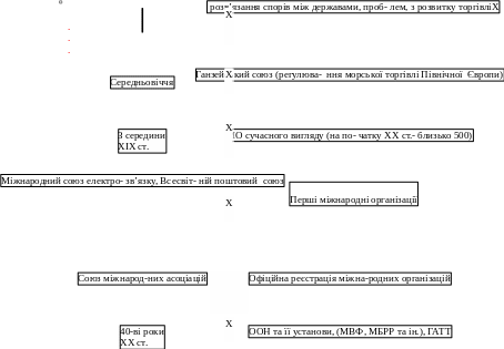 Рис.1. Основні етапи розвитку процесу створення міжнародних економічних організацій.
