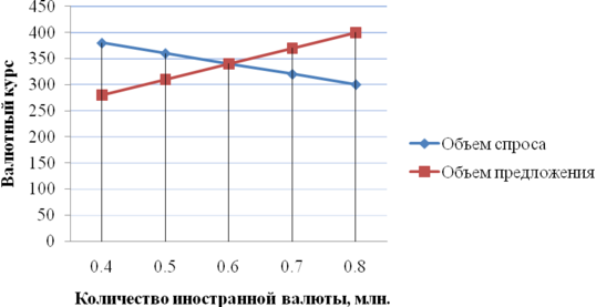Если курс франка установится на уровне 0,40 долл. за франк, то в этом случае спрос на иностранную валюту (или предложения национальной) окажется выше, чем предложение иностранной валюты (или спрос на национальную). В данном случае баланс текущих операций будет сведен с дефицитом.