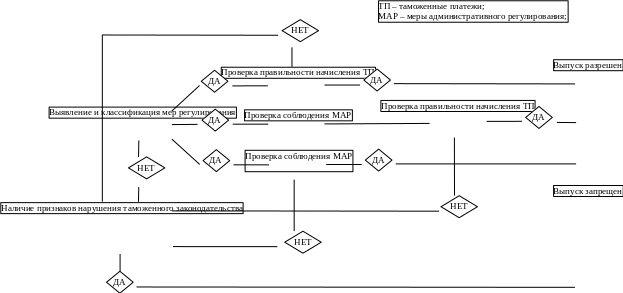 Административные меры в виде запретов и ограничений являются также определенным препятствием на торговых путях. Для целей организации системы управления рисками элементы таможенного контроля при основном таможенном оформлении, по мнению автора, целесообразно разделить по трем основным блокам: Определение кода товара в соответствии с товарной номенклатурой внешнеэкономической деятельности (ТНВЭД). Экономическое регулирование ВЭД. Административное регулирование ВЭД.