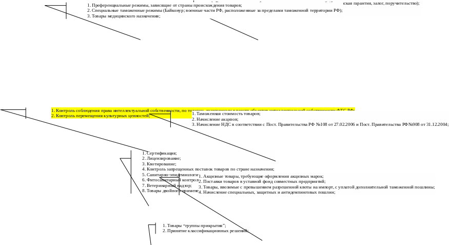 В то же время, остается открытым вопрос классификации таких элементы внешнеторгового регулирования, как импортные налоги (акцизы, НДС, сборы за таможенное оформление), контроль таможенной стоимости, процедуры предоставления льготных режимов налогообложения, имеющие разрешительный характер, процедуры получения отсрочки или рассрочки уплаты таможенных платежей, начисление особых видов пошлин (антидемпинговых, компенсационных, специальных, сезонных).