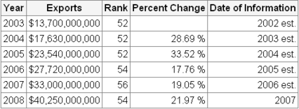 | Світовий експорт товарів Румунії, 1997-2007 | |||||||||||