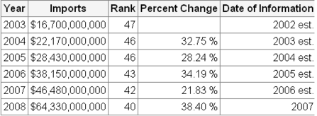 | Світовий імпорт товарів Румунії, 1997-2007 | |||||||||||
