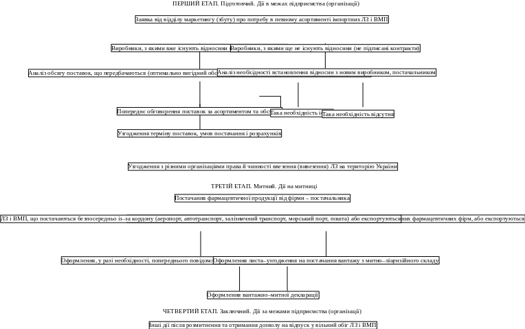 Перший етап є підготовчим в межах підприємства і має випереджати надходження ЛЗ і ВМП на митну територію України.