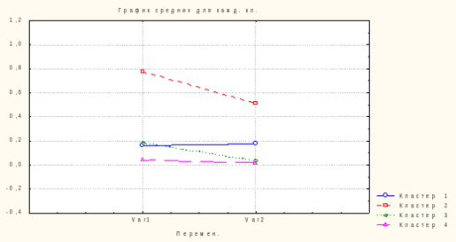 З метою його визначення нами був проведений кластерний аналіз з урахуванням 2–х перемінних: Var 1 – кількість угод (контрактів) на рік; Var 2 – кількість ЗТД операцій щомісячно (рис. 4).