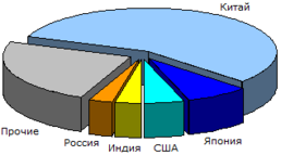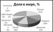 Как видно из диаграммы, Россия обладает наибольшими запасами железной руды в мире, это говорит о том, что скоро в наши «двери постучатся» китайские горнодобывающие предприятия с просьбой о создании совместных предприятий.