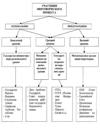 Таким образом, исследование деятельности международных организаций и отдельных нерегиональных посредников в процессе международного урегулирования ближневосточных конфликтов требует учитывать неоднозначность и динамичность занимаемых ими позиций по отношению к тем или иным сторонам как перманентно возникающих конфликтов, так и непрерывно длящихся. Особого внимания при этом требует проблема взаимовлияния миротворцев на выработку предлагаемых миротворческих планов. Не вызывает сомнения то обстоятельство, что политика ООН, ЕС или ОИК в разные периоды отражала конъюнктурные интересы доминирующих в них государств и их внешнеполитические и внешнеэкономические курсы. Поэтому необходимым условием для взвешенной и объективной политики миротворчества является соблюдение региональных условий поддержания мира. Тем более, что ближневосточная международная политика накопила достаточно большой потенциал строительства мира, о чем свидетельствую и многочисленные исследования71, и разработанная в региональных организациях нормативная база72.