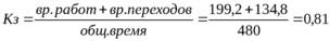 Коэффициент загруженности рабочими приемами: