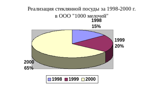 Динамика реализации стеклянной посуды в магазине ООО «1000 мелочей» за период 1998-2000 г. представлена в таблице 7.