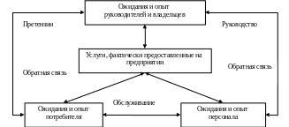 При восприятии и оценке качества получаемого обслуживания гость исходит из своих ожиданий. Обслуживающий персонал, предоставляя обслуживание, исходит из требований руководства и своих ожиданий, которые им (персоналом) рассматриваются как наиболее вероятная версия ожиданий гостя. Владельцы и руководство гостиницы имеют свою версию ожиданий гостя и, руководствуясь