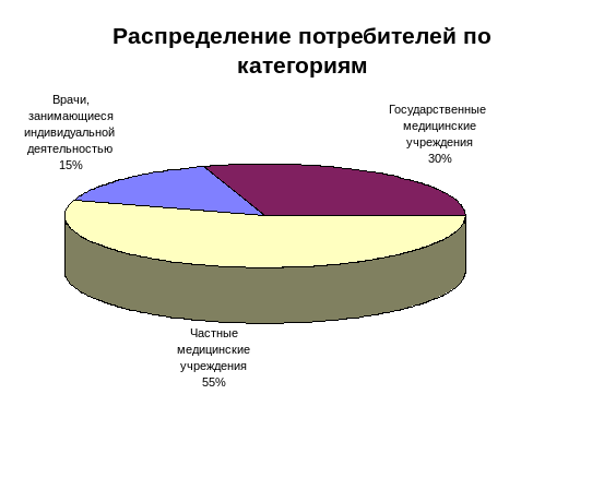 Из графика распределения потребителей по категориям видно, что основным потребителем нашей продукции являются частные медицинские учреждения.