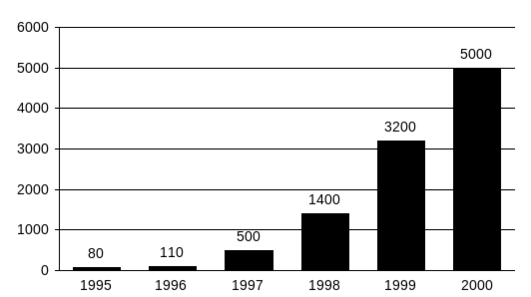 Сегодня в Европе, Америке и Азии насчитывается более 50 млн. пользователей сети Internet. В нашей стране количество пользователей электронной почты не превышает 650 тыс., а «Всемирной паутины» – 80 тыс. человек. Однако не следует забывать, что в России и странах СНГ темпы развития услуг Интернет в 2001 году стали опережать соответствующие американские показатели. Только в Москве рост числа пользователей Сети за этот год составил 400%. За тот же период число русскоязычных серверов во всем мире увеличилось почти в 30 раз.