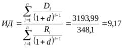 Индекс доходности – это отношение суммарного дисконтированного дохода к суммарным дисконтированным затратам: