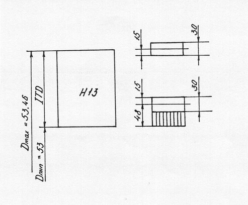 Наименьший предельный размер Dmin = D + EI = 53 + 0 = = 53 мм.
