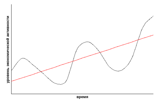 Низшая точка спада – т.е. производство и занятость, достигнув самого низшего уровня начинает "выбираться" со дна..