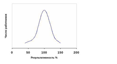 100% - ная производительность – взята за точку отсчета. Данный уровень производительности может обеспечить средний работник при соответствующей квалификации без чрезмерного напряжения сил.