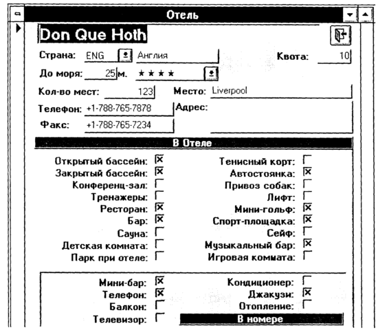 Неотъемлемая часть любой компьютерной агентской программы — справочные базы данных. «Само-Тур» поддерживает около 20 различных справочников (клиентов, гостиниц, перевозчиков, фирм-партнеров, посольств и т.д.). В режиме «выходные документы»