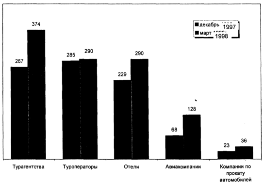 серверами, имеющими соответствующую базу данных, турагенты получают доступ к информации о наличии возможных услуг, стоимости, качестве, времени прибытия и отправления по разнообразному ряду туристических услуг от своих поставщиков. Более того, турагенты могут связаться с этими базами данных для того, чтобы сделать и подтвердить свой заказ. Функционирование и эффективность этих систем требуют, чтобы поставщики туристических услуг усвоили, по крайней мере, минимальный уровень технологии (например, навыки работы с персональными компьютерами и использования сетевых ресурсов в турагентствах), чтобы получать доступ к таким системам и быть на них представленными.