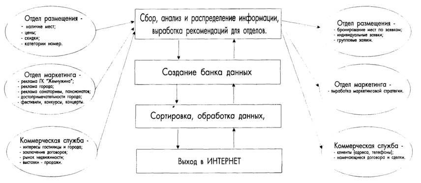 Информационный отдел будет тесно взаимодействовать с планово-экономическим отделом, службой по приему и обслуживанию и отделом маркетинга, и другими службами гостиницами.