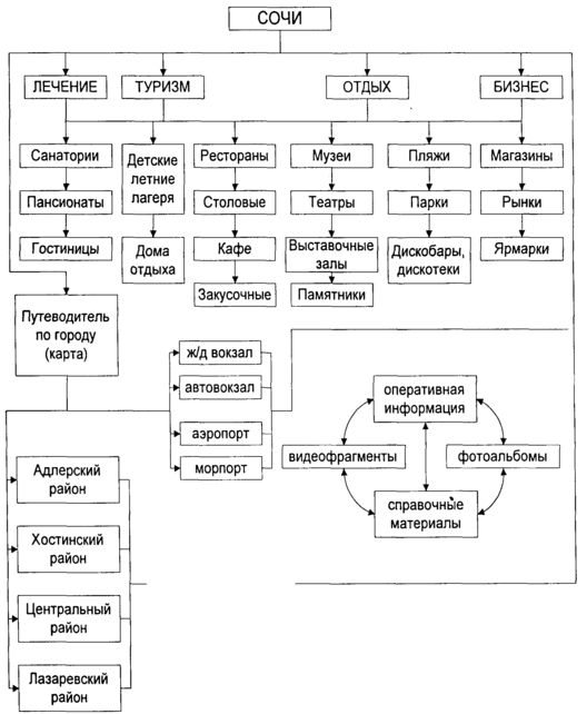 • карта города с нанесенными на нее основными объектами (вокзалы, гостиницы, санатории, рынки, ...);