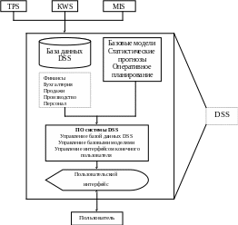 | DSS | Слабоформализованные данные; аналитические модели | Моделирование; анализ; интерактивность | Специальные доклады; анализ решений; реакция на запросы | Профессионалы; управляющие персоналом |