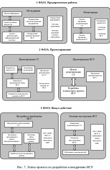 Проект по разработке и внедрению ИСУ на предприятии, как правило, делистя на три фазы: