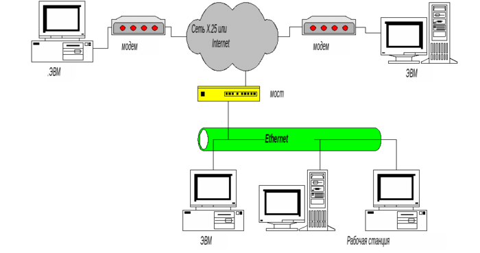 Рисунок 14 - Принцип объединения компьютеров в глобальных сетях.