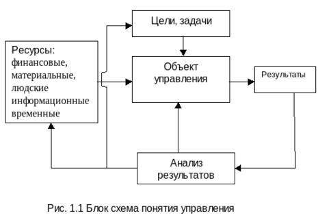 Система управления – это совокупность действий, определяющих направление управленческой деятельности. Структурно процесс управление представлен на рис. 1.1