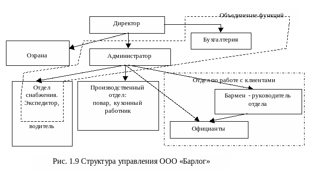 лиента встречает официант. Он знает, какой имеется базовый набор блюд, напитков, что может приготовить дополнительно производственный отдел. В ходе переговоров стороны согласуют список блюд и напитков. Официант ставит в известность своего непосредственного руководителя - бармена и администратора о поступившем заказе, а также, справочно, повара – руководителя производственного отдела. Администратор (иногда бармен) ставит задачу перед руководителем производственного отдела, вместе сверяют наличие продуктов, напитков и сроки поставки тех, что отсутствуют. Эта полученная от администратора информация является для повара фактически приказом к исполнению. В дальнейшем информацию о потребности клиента повар может уточнить у официанта, но для этого уже не потребуется дополнительного распоряжения администратора или директора Обмен устанавливается на горизонтальном уровне: клиент – официант – повар – экспедитор – поставщик требуемого продукта (напитка).