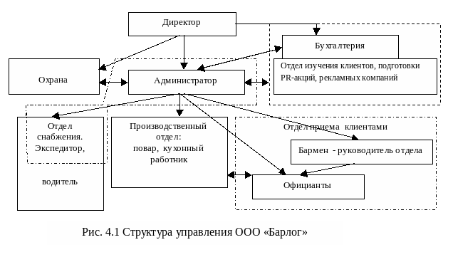 Данная структура управление на наш взгляд боле полно отвечает целям и задачам строительства холдинга его главной цели, а также целям ООО «Алена»: предоставить полноценный отдых людям, имеющим средний достаток и немного выше среднего, при сохранении хорошего уровня рентабельности и прибыльности. При такой структуре управление администратор сможет сосредоточится на приемё клиентов, при необходимости сможет поддержать с ними беседу, создать уютную обстановку, контролировать работу официантов и бармена. В случае отсутствия администратор делегирует свои функции бармену. В дневные часы, когда посетителей в кафе немного, администратор сможет исполнять функции экспедитора. Такая структура управления повысить контроль за работой официантов, позволит лучше их настраивать на вежливое предупредительное отношение с посетителями. При необходимости администратор сможет подстраховать официантов, если при большом наплыве посетителей им потребуется помощь.