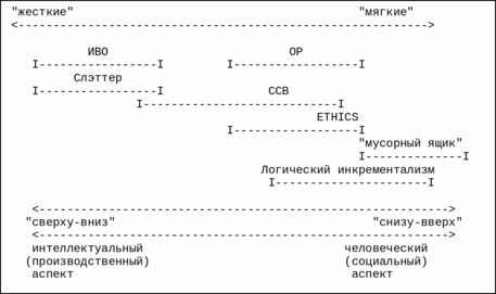 Существующие подходы проведения изменений представлены на континууме "жесткие" - "мягкие" проблемы /12, 13, 14/. К жестким проблемам относятся проблемы с хорошо определенным конечным результатом изменений, но не определенным способом перехода к этому результату. К "мягким" относятся те проблемы, для которых не определен не только способ перехода к новому состоянию, но также нет четкого представления и о желаемом состоянии, которого система должна достигнуть в результате данного изменения. (см. Рис. 2)