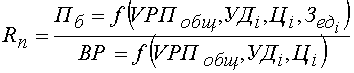 Аналогично осуществляется факторный анализ рентабельности инвестированного капитала. Балансовая сумма прибыли зависит от объема реализованной продукции (VРП), ее структуры (УДi), себестоимости (Зед), среднего уровня цен (Цi) и финансовых результатов от прочих видов деятельности, не связанных с реализацией продукции и услуг (ВФР).